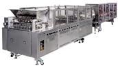 油拭き、生地充填、焼成、反転、取り出し、中味充填、焼き印、合わせ、耳締めまでを自動で行う機械です。
